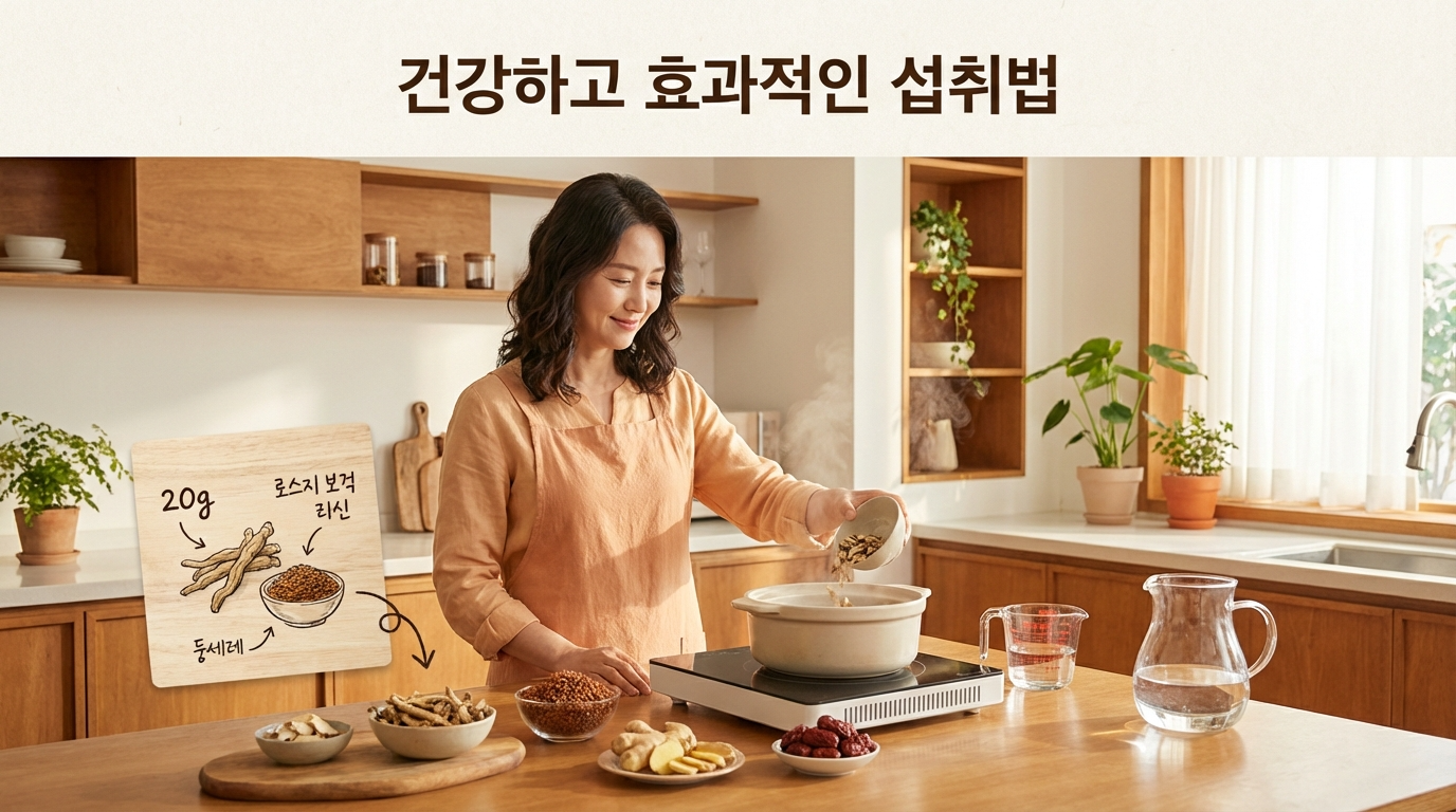 깨끗한 물 600ml에 말린 둥굴레 20g을 넣고 약한 불에서 15~20분간 달여서 마시면 됩니다. 하루 1~2잔을 목표로 하되, 처음 마시는 분들은 적은 양부터 시작해서 자신의 체질에 맞는지 확인하는 것이 좋습니다. 좋은 둥굴레를 고르려면 옅은 갈색을 띠면서 잘 말라 있는 것, 너무 가늘거나 부서진 것은 피하는 것이 좋습니다.